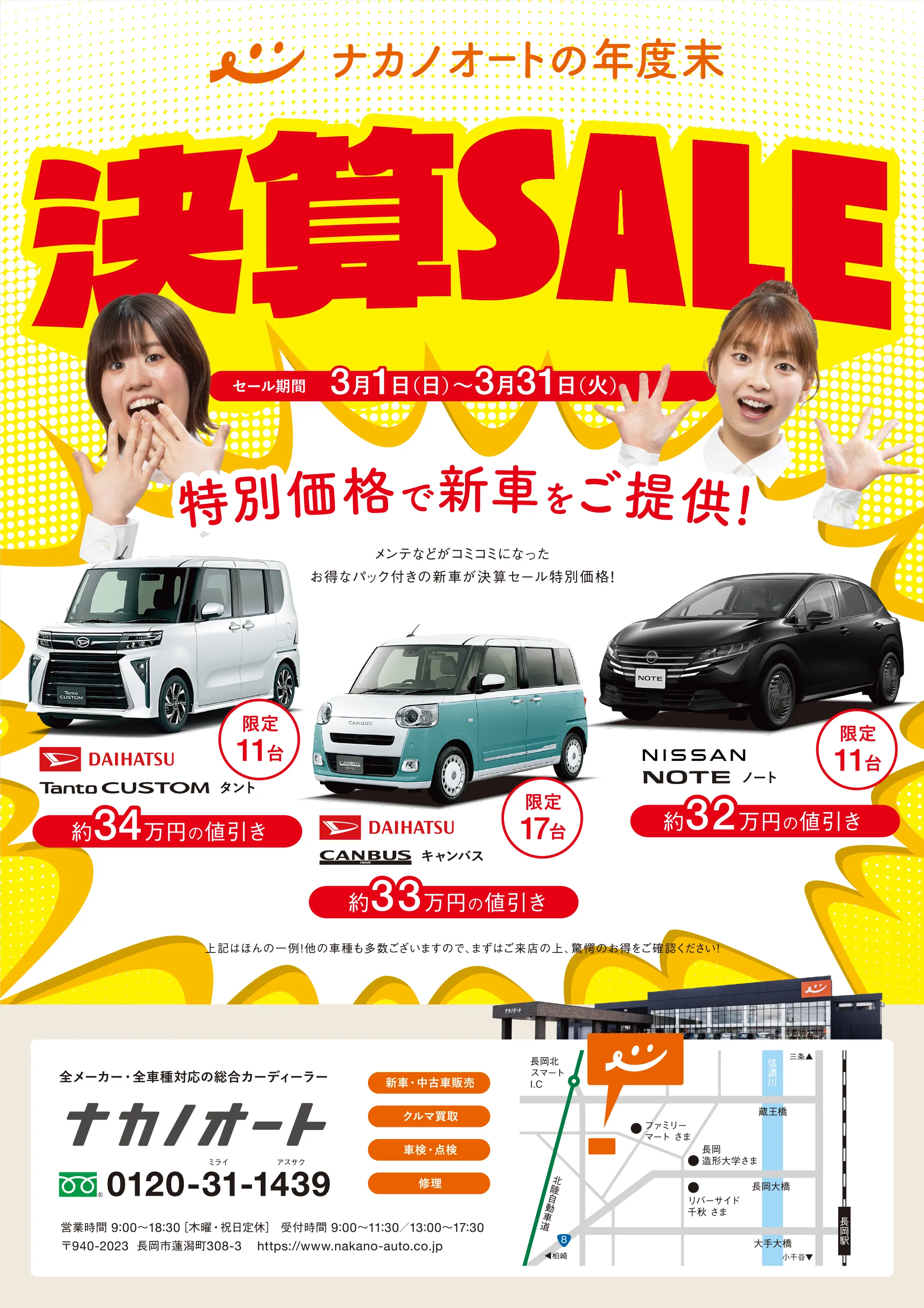 ※ご利用時はクーポン画面を店頭でご提示ください。 ただいま「決算前倒しSALE」を開催中です。