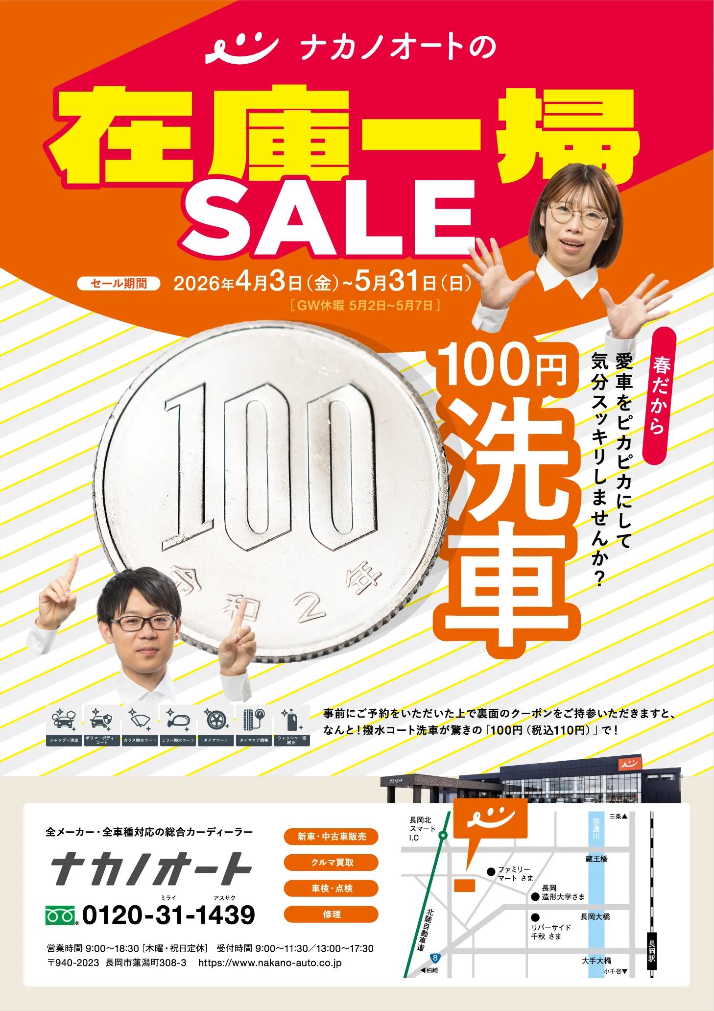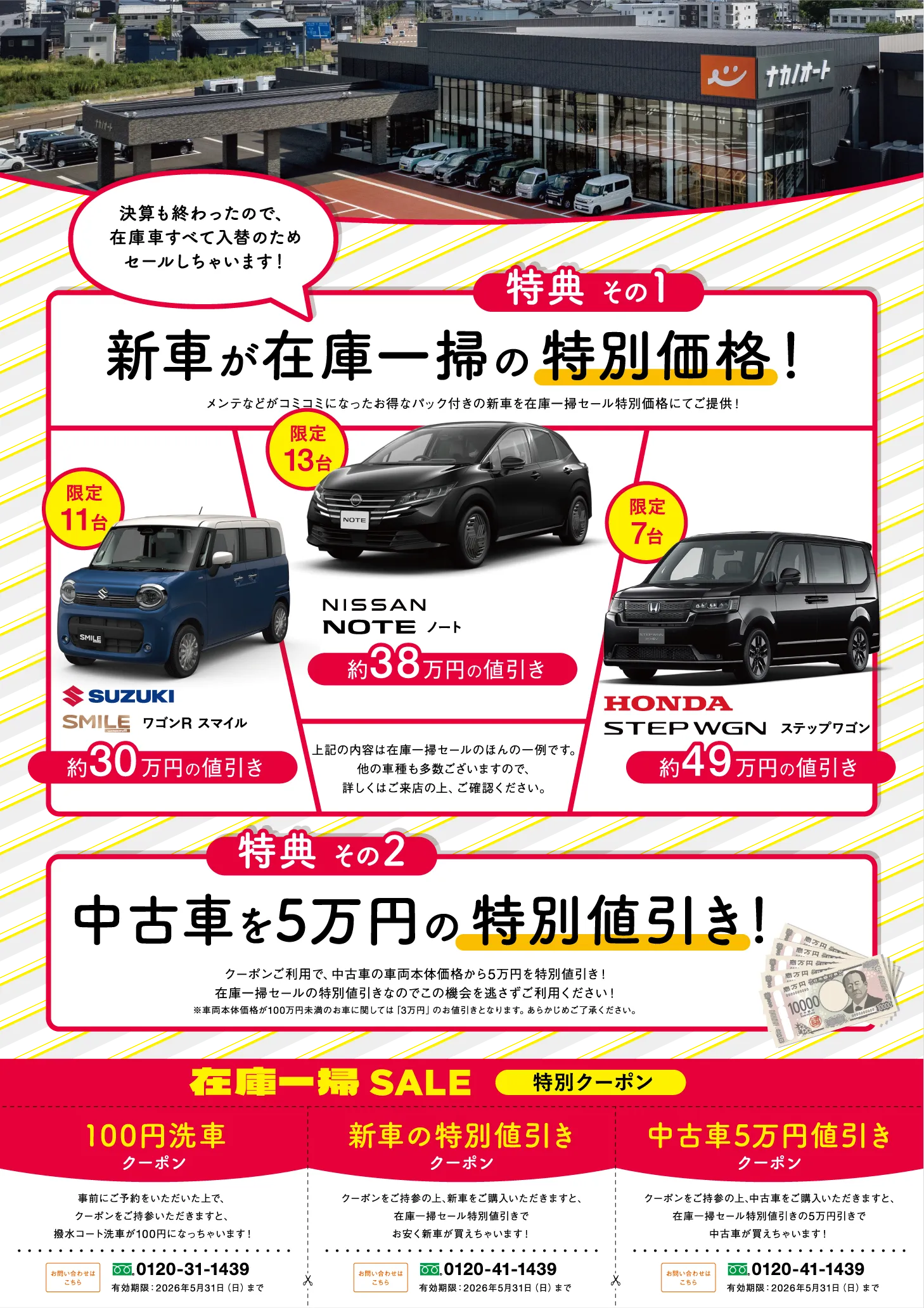 ※ご利用時はクーポン画面を店頭でご提示ください。 3/31(火)までナカノオートの年度末決算セール開催中!